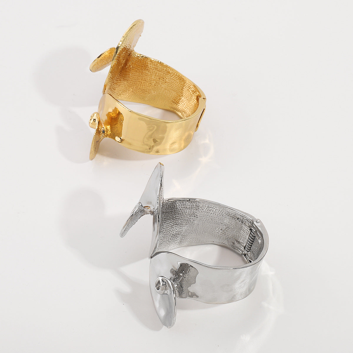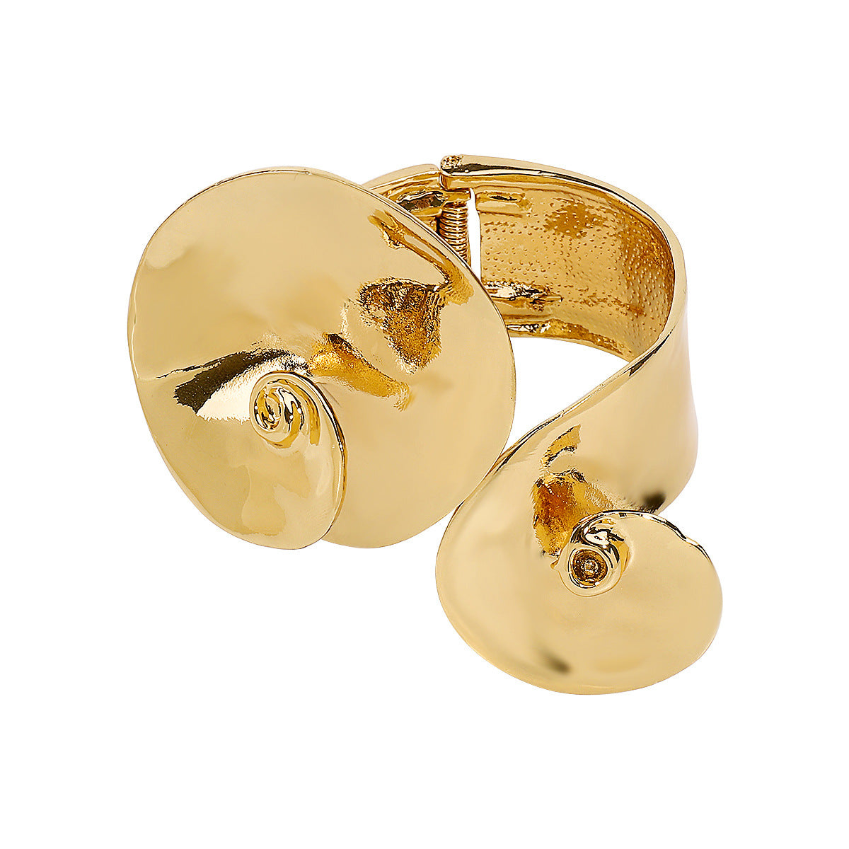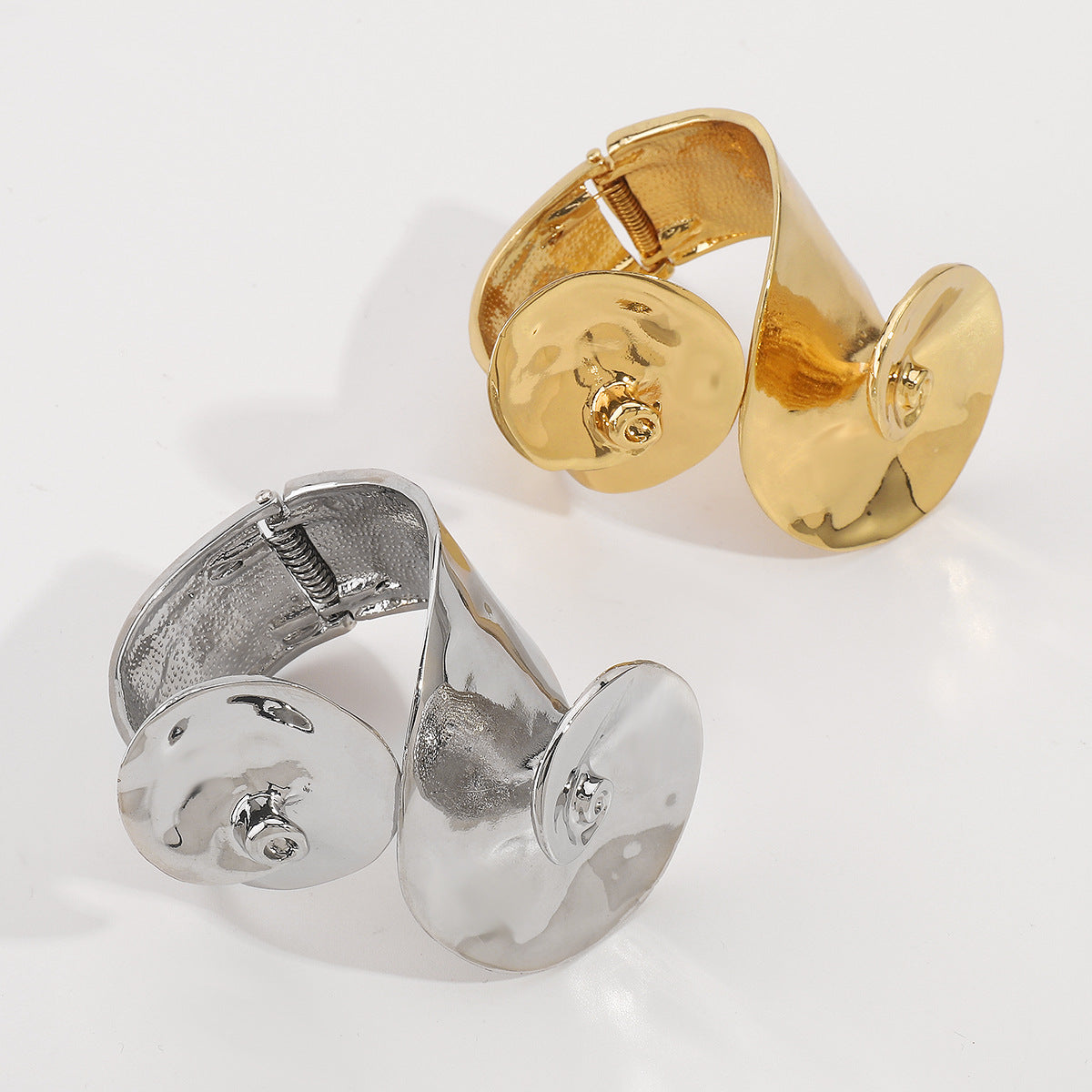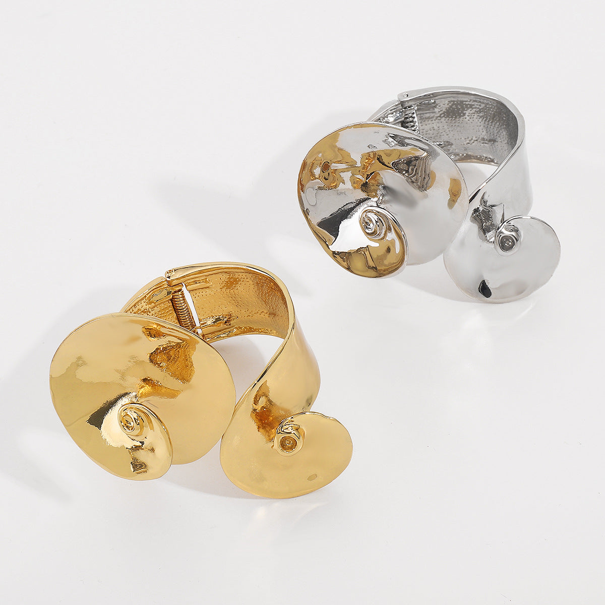 Make a bold statement with this large spiral bangle cuff, designed to turn heads. Its striking, sculptural design elegantly wraps around your wrist, creating an effortless and daring look. Available in luxurious gold or sleek silver, this piece is perfect for adding drama and sophistication to any outfit.